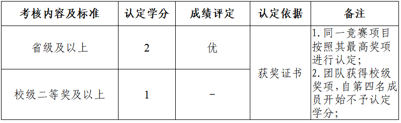 竞赛获奖作为学年各类评优评先的重要依据,获得校级及以上奖项的主要成员可依据相关文件规定替换创新创业课程学分,具体替换标准见下表。