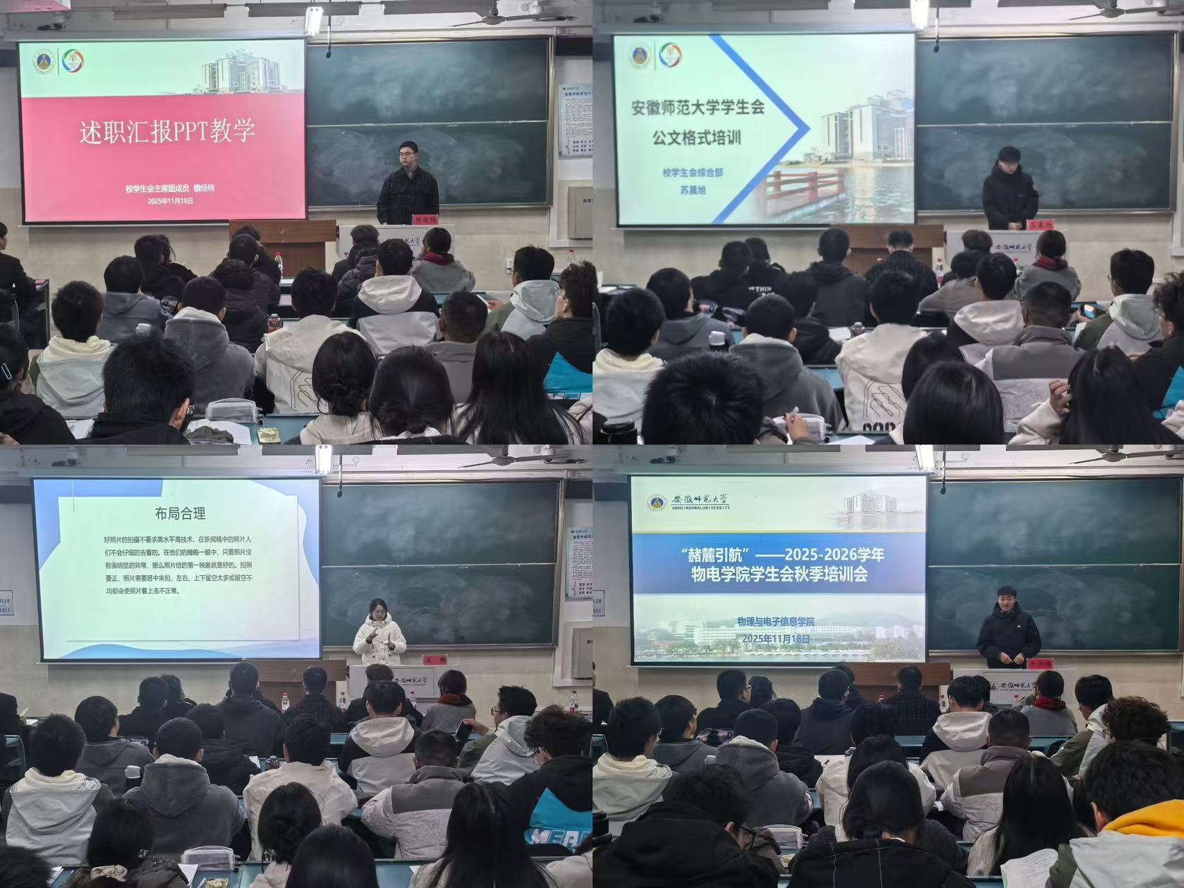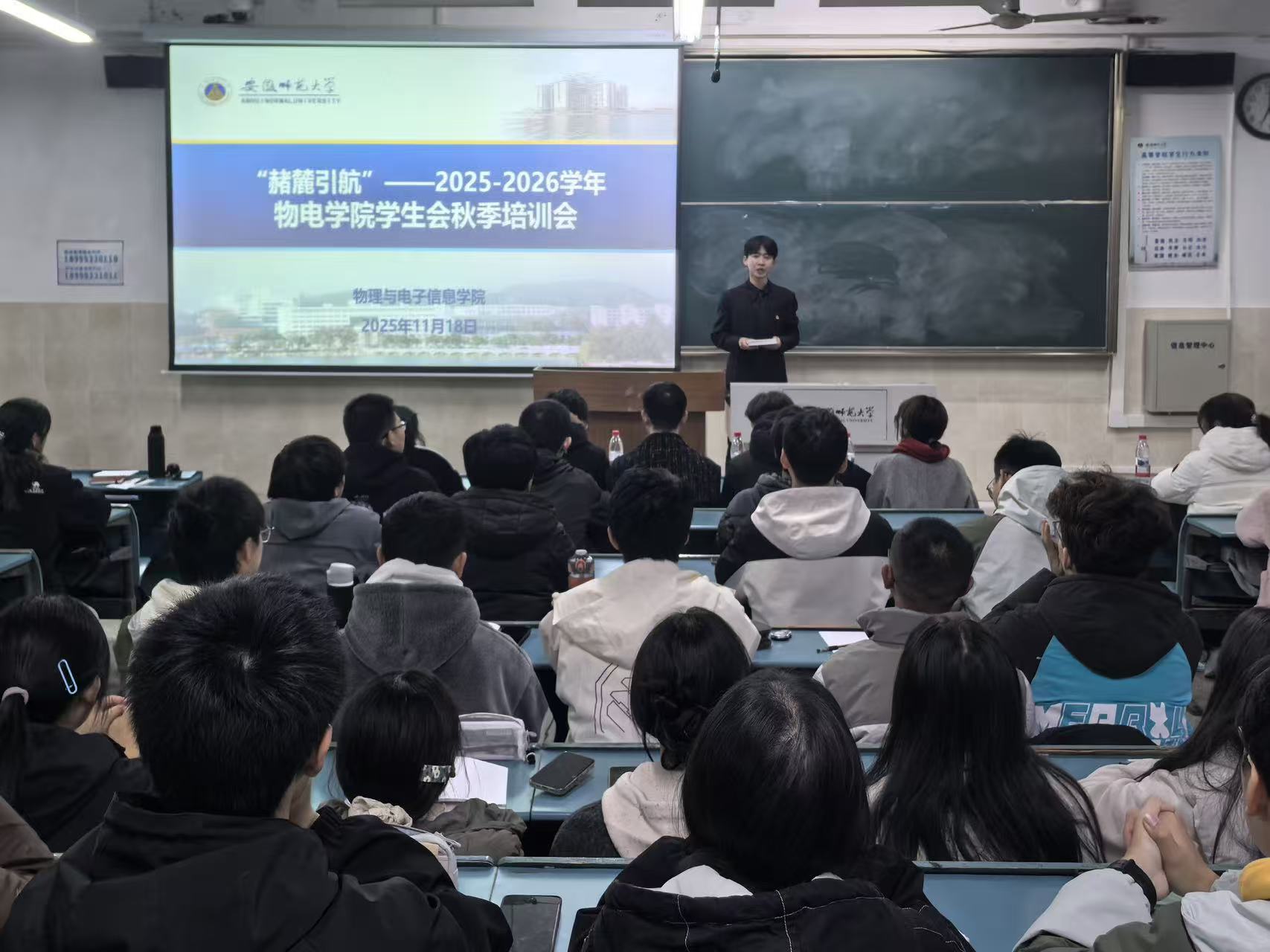 为深入学习领会习近平总书记关于青年工作的重要思想,贯彻落实高校学生会深化改革要求,全面提升学生骨干的综合能力,11月18日晚,安徽师范大学物理与电子信息学院学生会于花津校区行知楼1号楼101教室成功举办“赭麓引航”秋季培训会,院学生会全体工作人员参加本次培训。