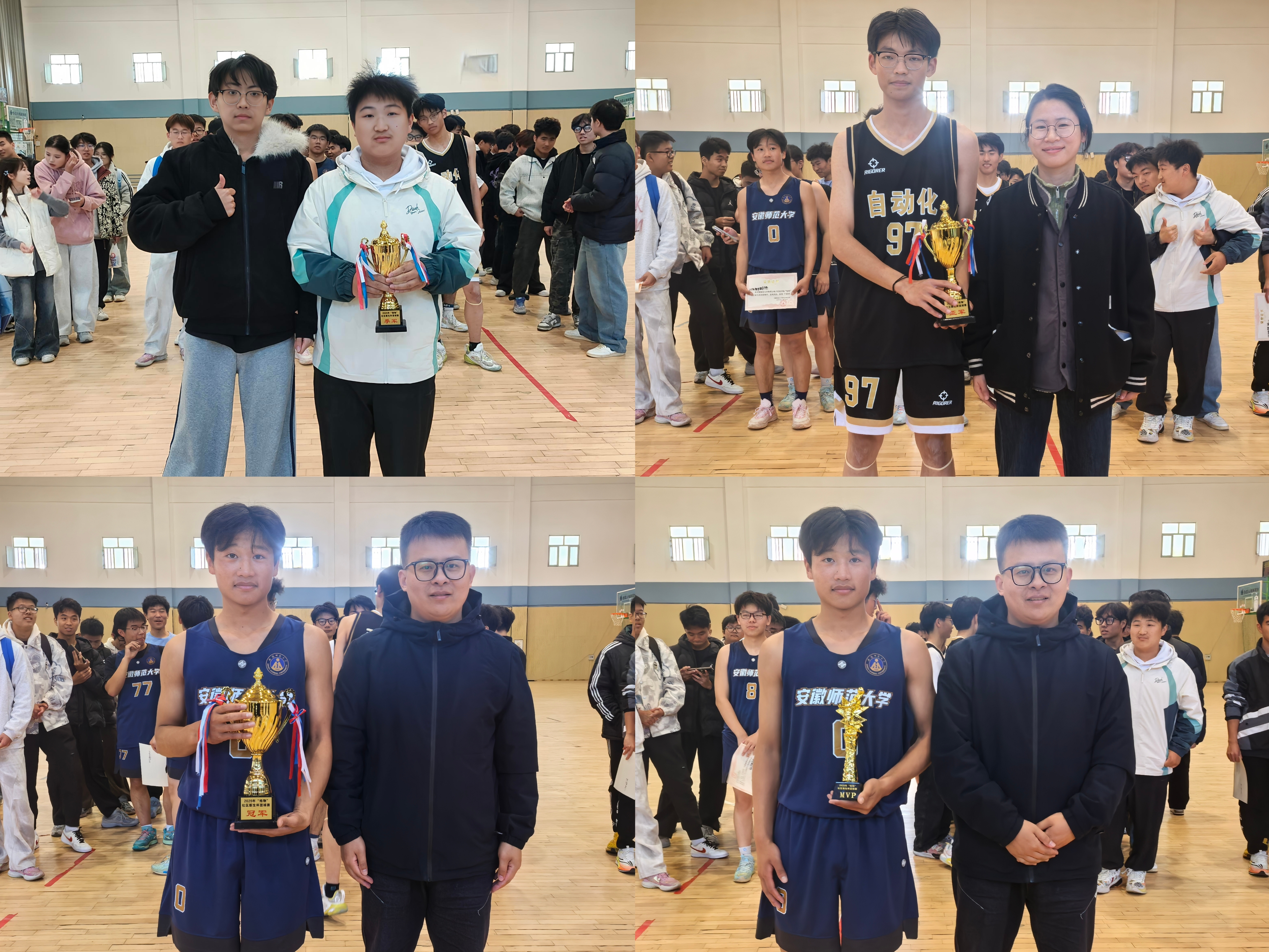 经过激烈比拼,最终25级物理学(师范)3、4班夺得本届赛事冠军,25级自动化专业荣获亚军,25级物理学(师范)1、2班获得季军。冠军球队队员25级物理学(师范)3班吴豪同学凭借全面出色的赛场表现,获评“最有价值球员”称号。赛后,院学生会指导教师邹孝龙老师、辅导员徐浩成老师、院学生会主席团成员牛润涛与院学生会体育部负责人安虹畅分别为获奖个人与集体颁奖。