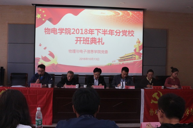 本网讯(物电学院 李琦琦)10月13日上午,物电学院分党校在物理楼304会议室举行第6期学生党员培训班和第25期(校57期)入党积极分子培训班开班典礼。校党委组织部副部长、校党校常务副校长谢超峰,院党委副书记、分党校副校长黄友生,院关工委副主任、分党校指导老师陶绪德,院党委秘书王梦晓,培训班班主任米佳佳,副主任李琦琦以及71名预备党员和70名入党积极分子出席此次开班典礼。此次开办典礼由米佳佳主持。
