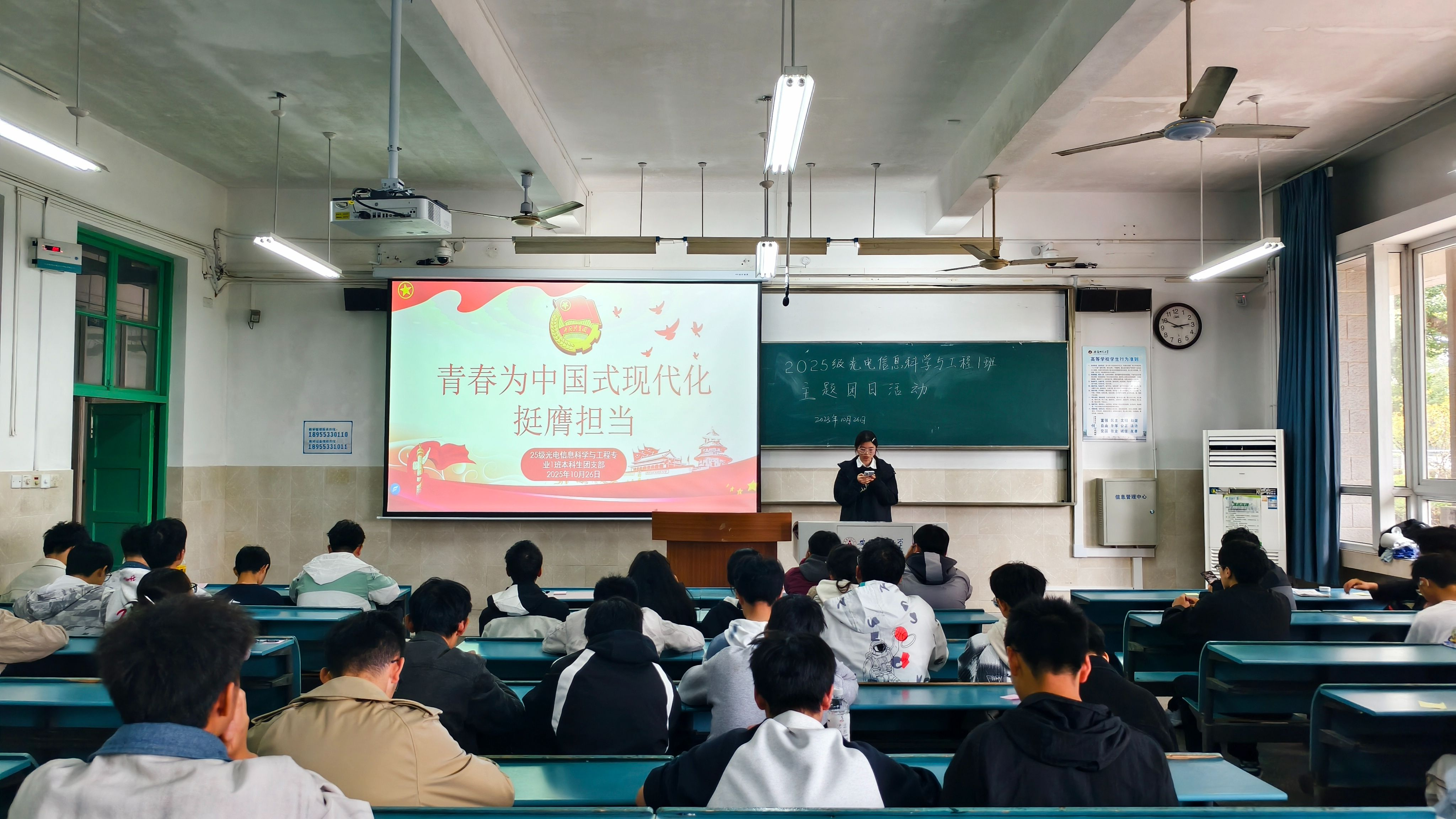 2025年10月26日,一个雨后天晴的下午,为引领团员青年深刻理解中国式现代化的内涵,激励他们将个人专业学习与国家发展紧密结合,25级光电信息科学与工程专业1班本科生团支部在行知楼2010101教室成功举办了以“青年为中国式现代化挺膺担当”为主题的团日活动。支部全体团员以饱满的热情参与了本次活动。